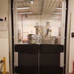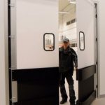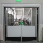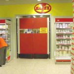 Pendeldörrar till butiker, stormarknader och livsmedelsproduktion. Av slågtålig Polykarbonatplast, med slitmattor i olika färger, och påkörningsbågar för tyngre trafik. Stabila karmsystem i aluminium för olika typer av väggar. Enkelflygliga eller Parflygliga dörrblad. Egen produktion i Sverige.